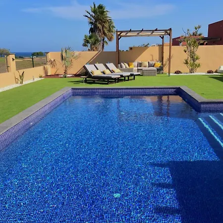 寝室4室のVilla Aura コスタ・デ・アンティグアはPlaya de la Guirraから歩いて10分に位置し、リラックスできるプールを提供しています。 カレタ・デ・フステから2キロメートルの距離離れた場所に位置する浴室4室のヴィラは、海の景色を望むテラスが自慢です。